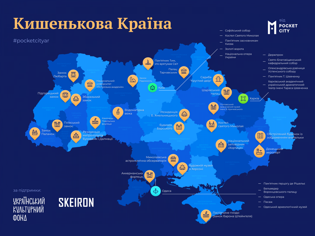 У 2020 році за підтримки Українського культурного фонду ми запустили наш наймасштабніший проєкт — «Кишенькова країна». Це була не просто експедиція, а справжня пригода, яка охопила всю Україну. За кілька місяців команда Skeiron оцифрувала 40 архітектурних пам’яток, здійснивши подорож через усі 24 області України, включно з АР Крим та Донбасом. Ми прагнули створити не просто колекцію 3D-моделей, а інтерактивну карту, яка відкривала би Україну по-новому.